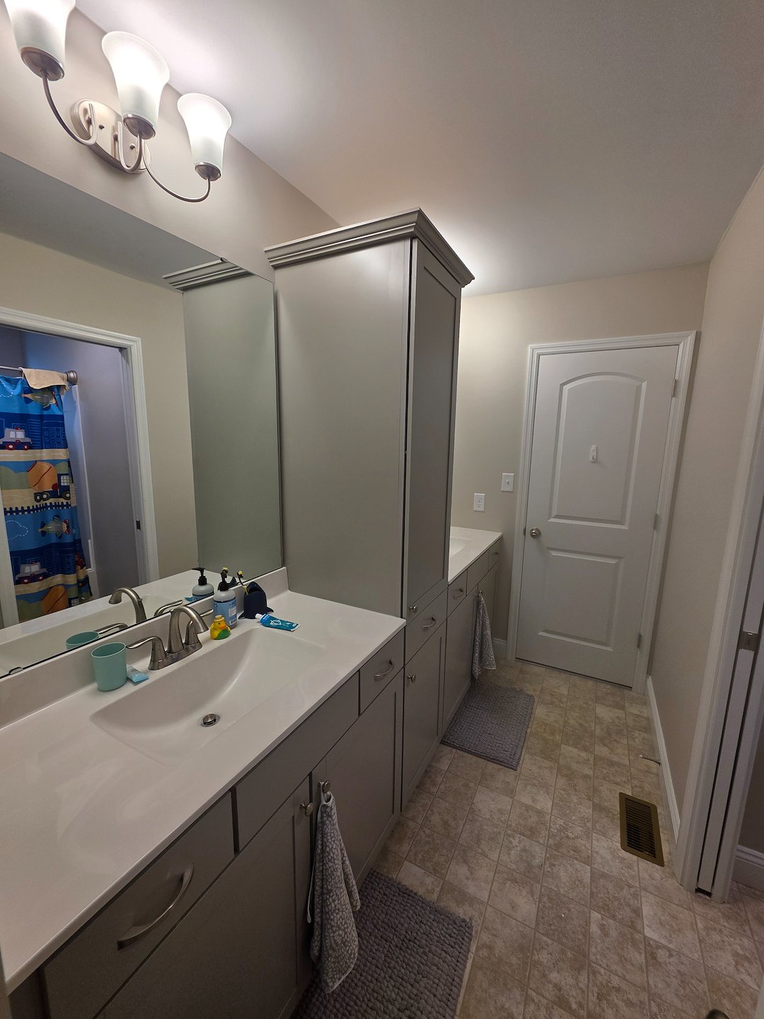 Selah Painting completed interior painting for a few bathrooms in Cottleville, MO. The project followed recent work we did on the same home, where we painted several bookshelves. After finishing the shelving, the homeowner asked us to return and paint the bathrooms to match the updated look inside the house.